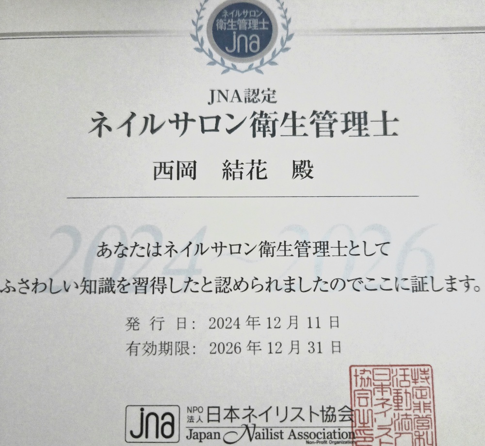 ネイルサロン衛生管理士の勉強もしました📒